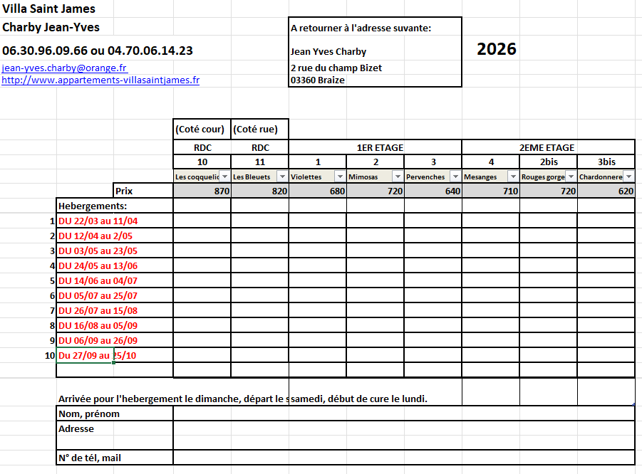 Pour la location de draps, linge, forfait ménage, voir les tarifs ci-dessous.